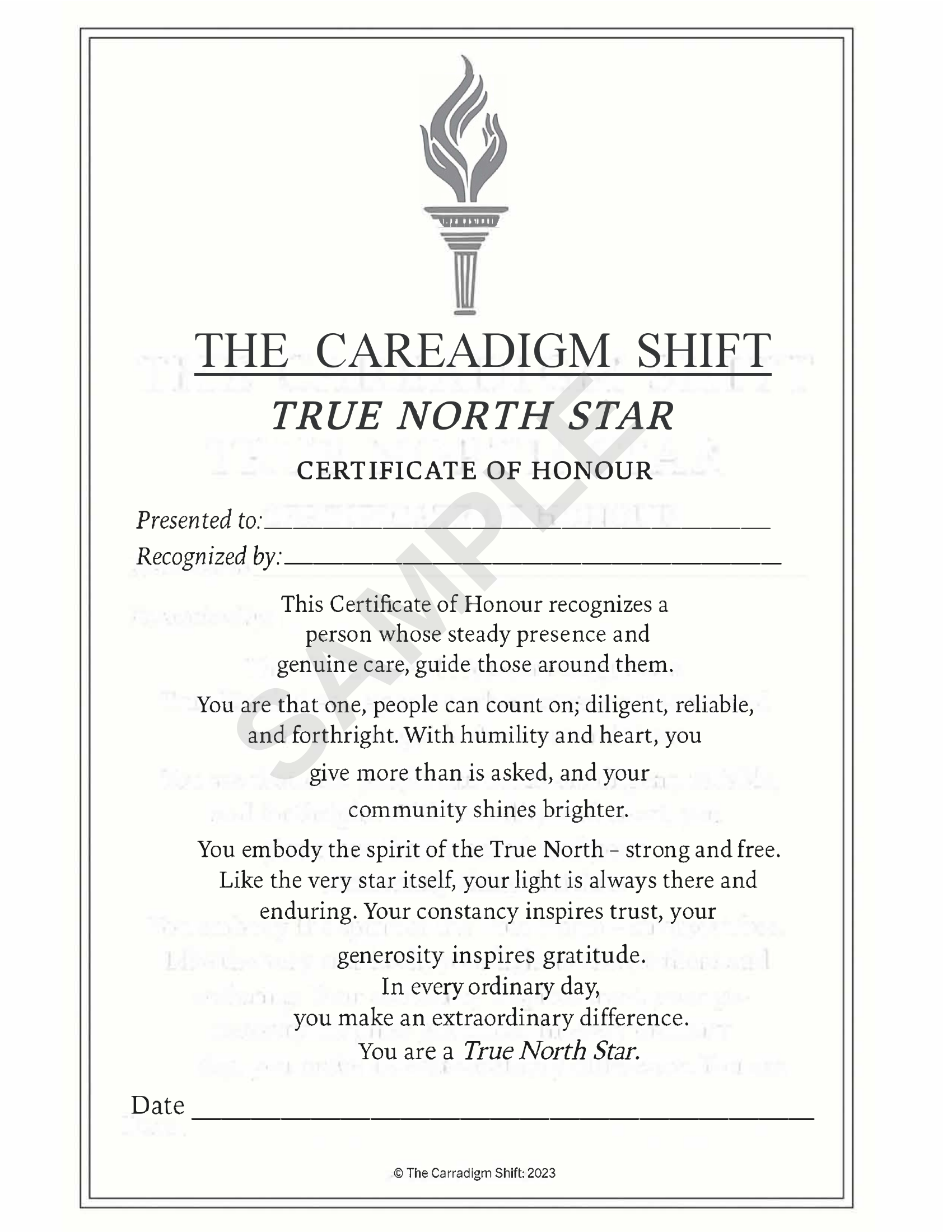 The Careadigm Shift-True North Star-Certificate of Honour
